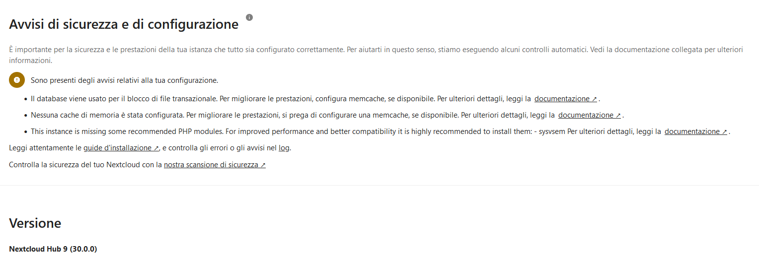 - Nessuna cache di memoria è stata configurata. Per migliorare le prestazioni, si prega di configurare una memcache, se disponibile.